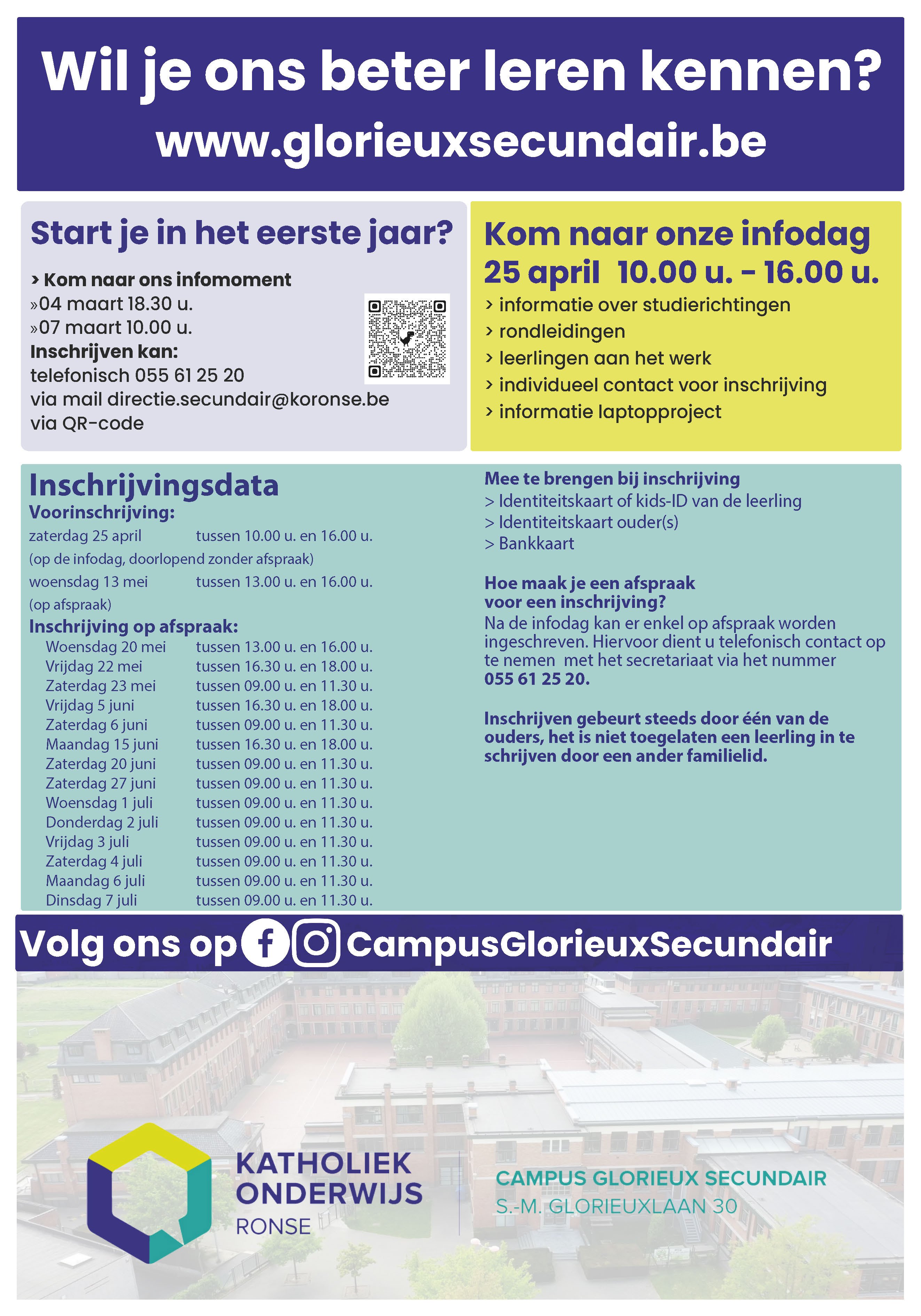 Na de infodag kan inschrijven enkel op afspraak. Deze afspraken vinden plaats op: