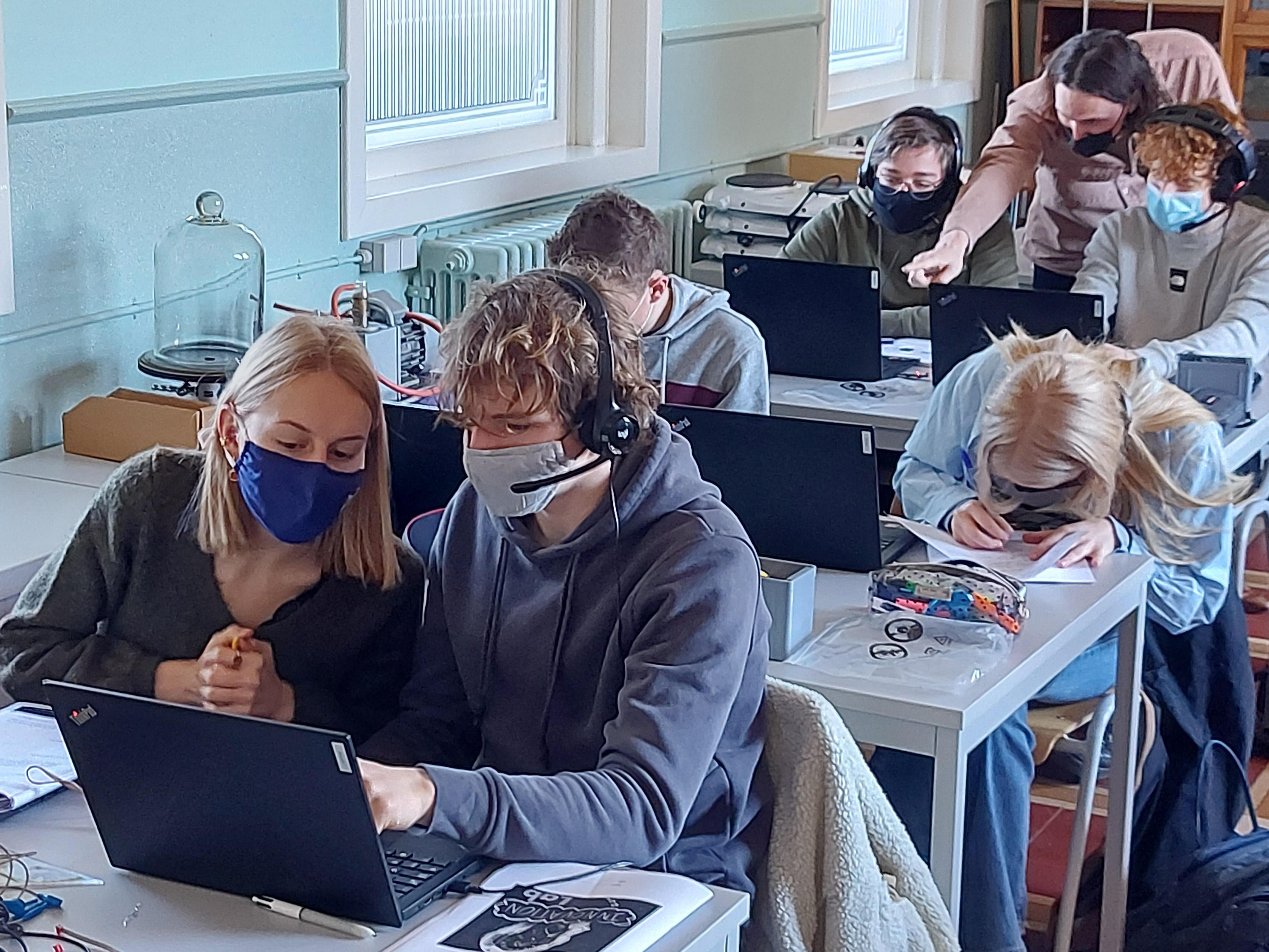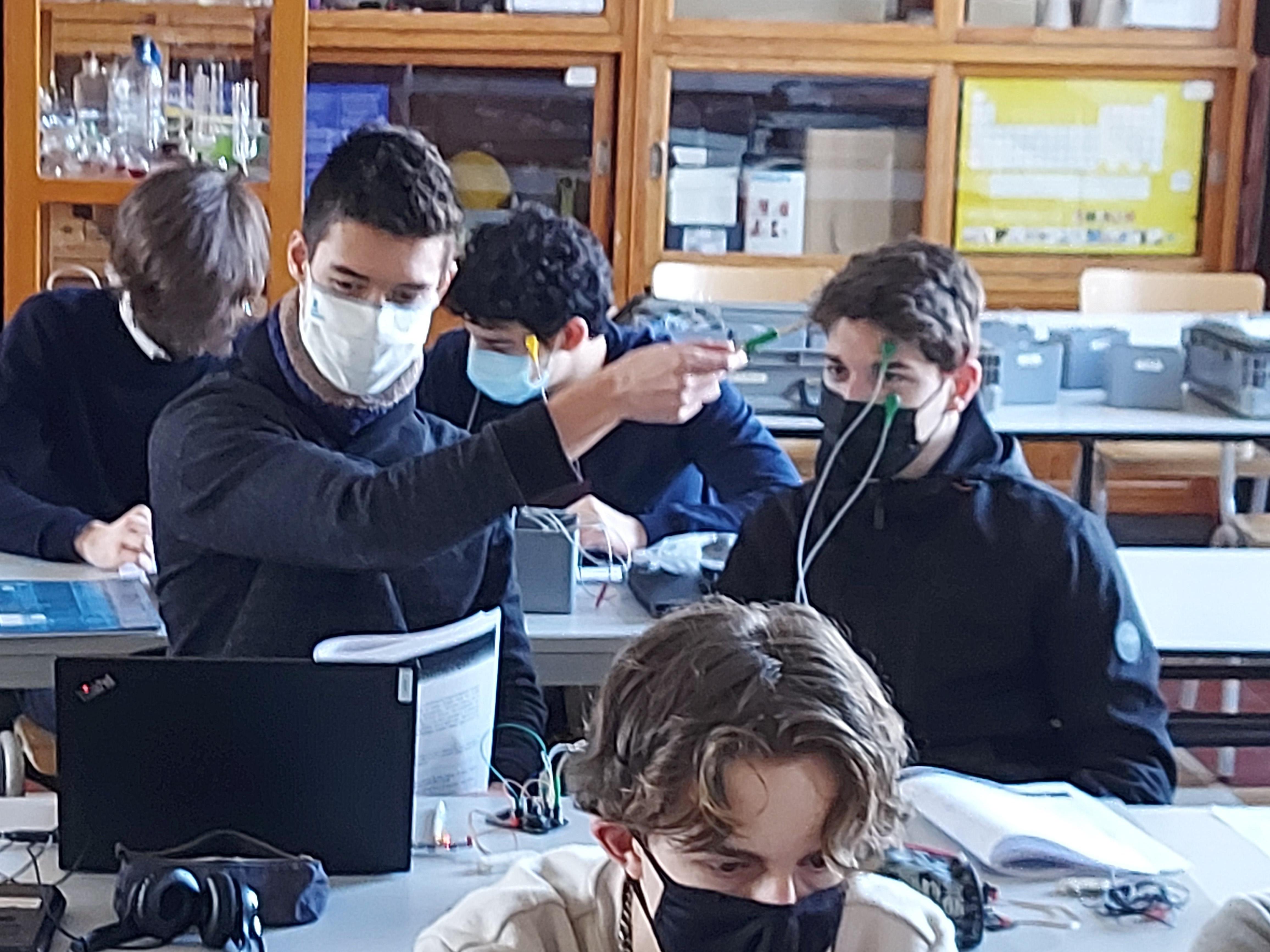 Gebruik makend van een experimenteerkoffer, uitgeleend door KULeuven realiseren de leerlingen in verschillende stappen een technologisch hulpmiddel om via oogbewegingen een computerspelletje aan te sturen. Dit binnen een context van hulp aan ALS patiënten die enkel nog de volledige controle hebben over hun oogspieren. Leerlingen ontdekken stapsgewijs meer over biopotentialen, analoog-digitaal conversie, versterkers en programmeren van computerspellen.