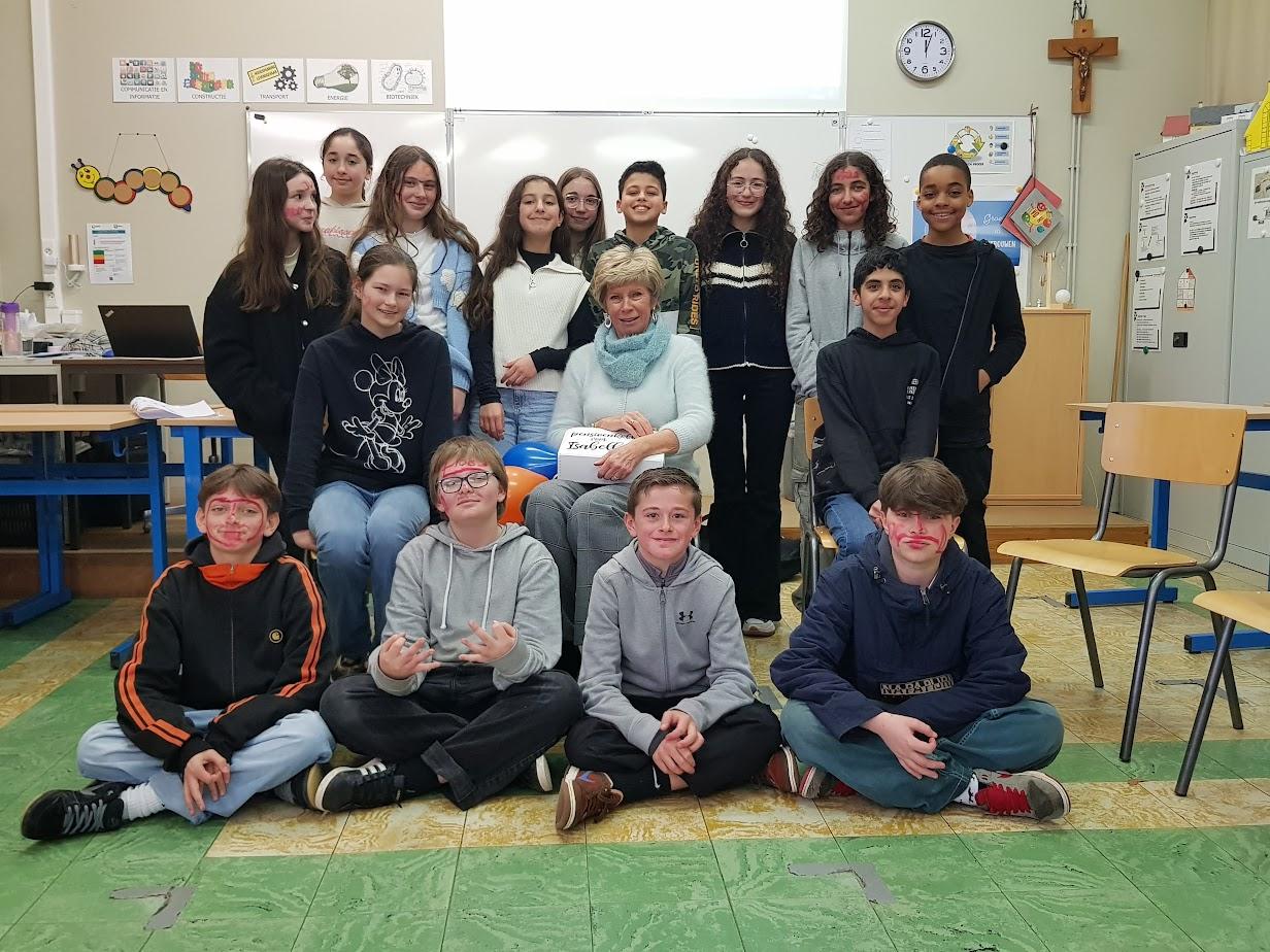 Vorige week nam 1A M2 op gepaste wijze afscheid van hun klastitularis, die mag gaan genieten van haar wel verdiend pensioen. De collega's en leerlingen van haar geliefde school, waar ze zelf sinds haar 6 jaar rond liep, zijn haar heel erg dankbaar voor haar jarenlange inzet.