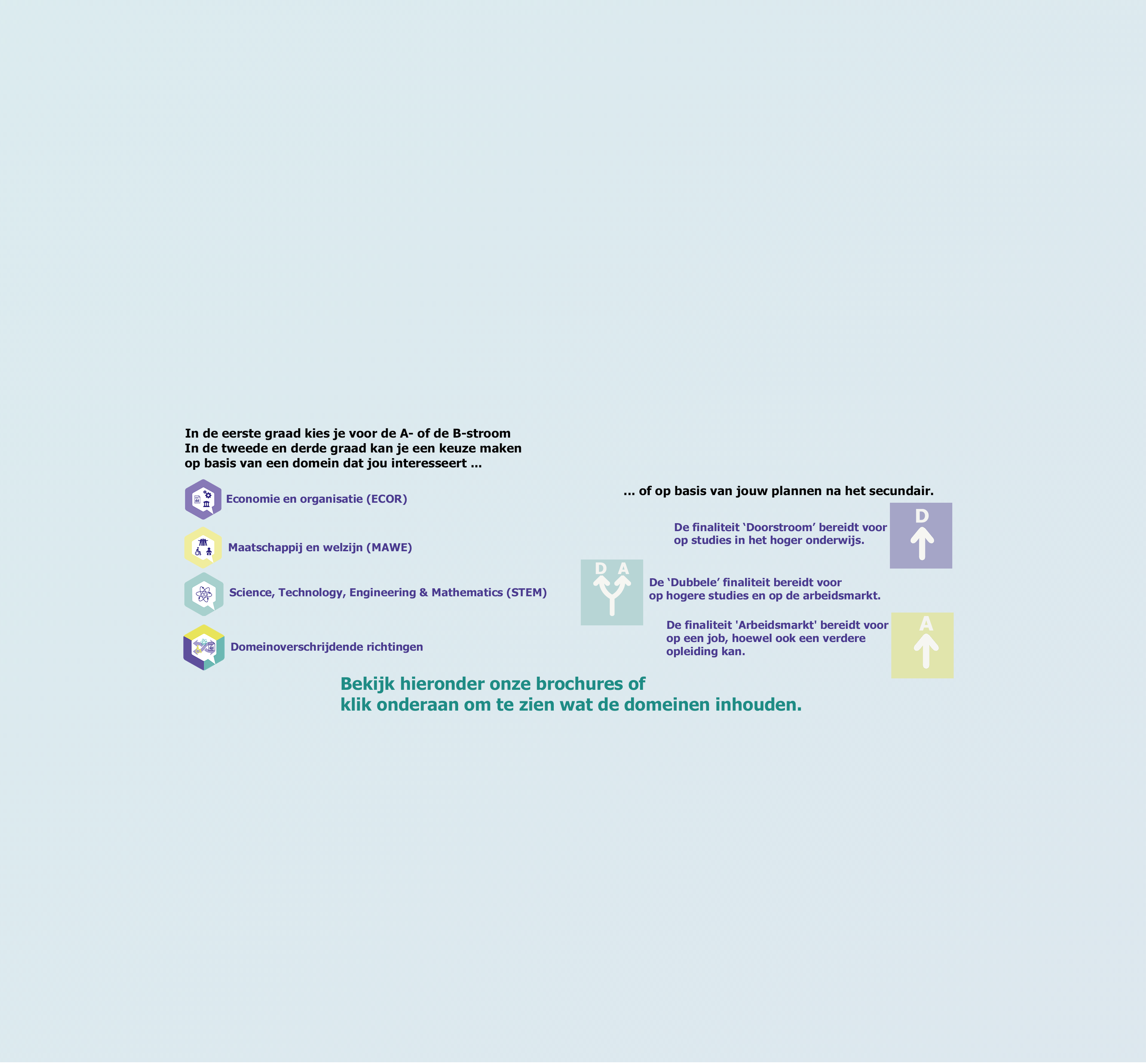 Deze richtingen sluiten aan bij meerdere domeinen. Ze hebben allemaal de finaliteit doorstroom en bereiden maximaal voor op de hogeschool of de universiteit.