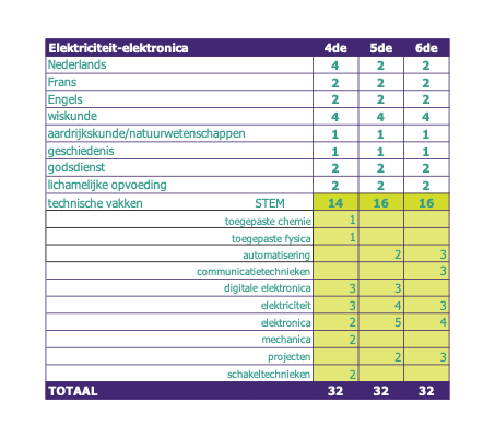 Lessentabel voor de richting Elektriciteit-elektroncia